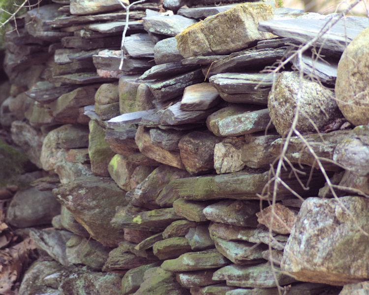 In the middle of a 90+ acre wood lie rock walls of impressive scope and detail. Perhaps a hundred years ago these walls separated cleared farmland from the forest primeval. Or, perhaps, residents were so interested in marking their property that they spent hours of effort to build walls among the woods?