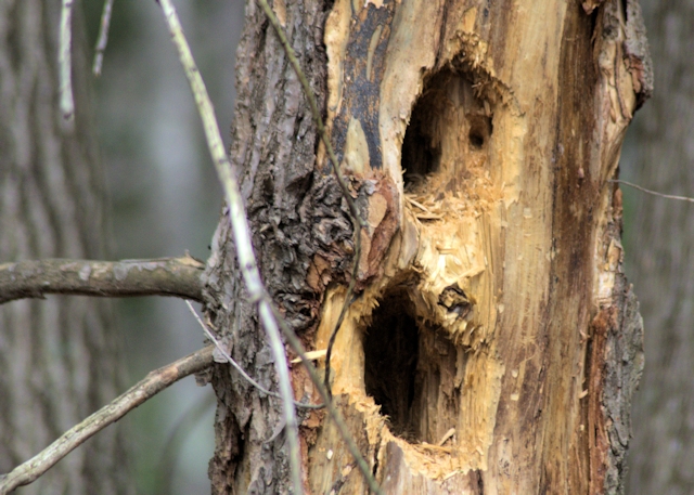 birdsMainephotography Woodworking An old tree has been worked over by a large woodpecker (or more than one). We have seen a large pileated woodpecker in the area but not recently.