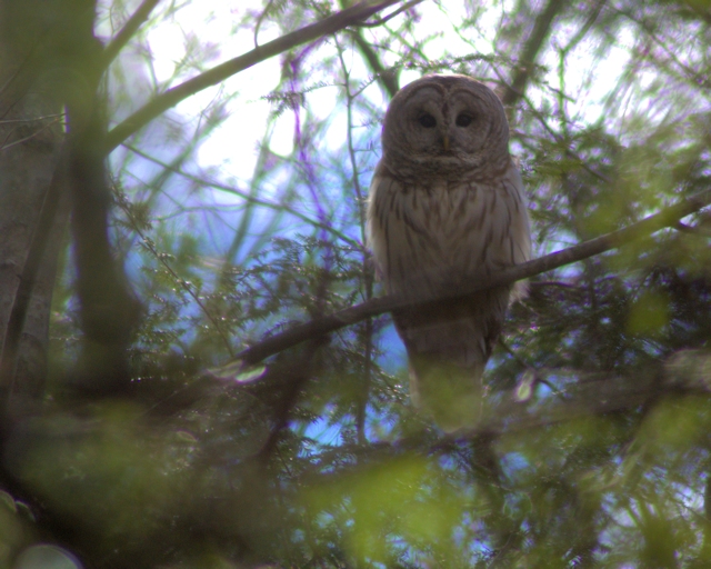 birdsMainephotography The barred owl at attention A barred owl stares down as we walk through his realm