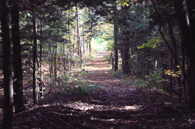 A former electric railway right-of-way provides a trail through the frontwoods. Abandoned in the 1940s or so, it is now used as a snowmobile path in the winter.