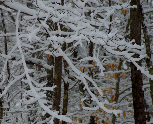 Mainemaine woodsphotography Wet snow sticks to everything This weekend’s storm is a typical late season snow event. Mild temperatures and high humidity combine to give us heavy, wet, and sticky white stuff.