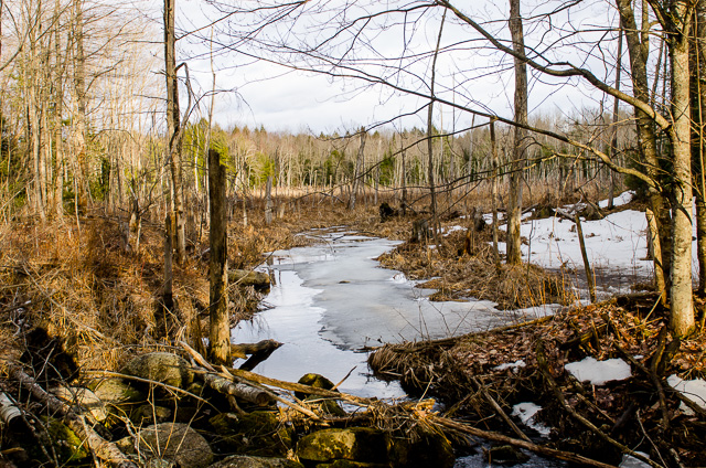 bogsMainemaine woodsphotography Bog view from the beaver dam This is the late winter, early spring view of the beaver bog from the beaver’s primary dam site. The beavers have departed long ago but their bog lives on. Share this: Click to share on Facebook (Opens in new window) Facebook Like Loading...