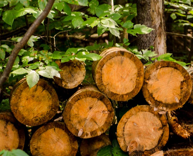 New Hampshirephotography Logs by the golf course On a recent walk along a New Hampshire golf course, we spotted some logging work.