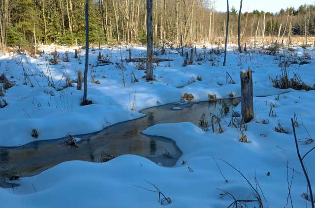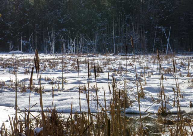 bogsMainemaine woodsphotography Wintertime bog patrol This past week included visits to the beaver bog when there was some sunlight; snowfall so far this year is just below the level requiring snow shoes.