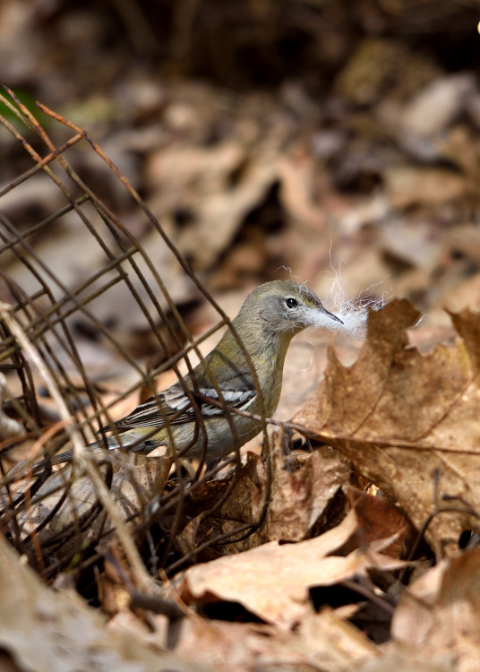 birdsMainephotography Nesting material A small vireo (maybe?) grabs discarded hair from our malamute husky.