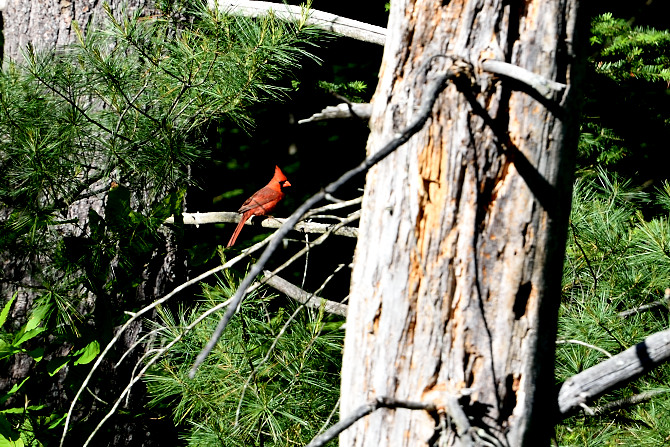 birdsbogsMainemaine woodsphotography A cardinal drops by From yesterday’s visit to the upper bog, the second of our colorful bird visits.