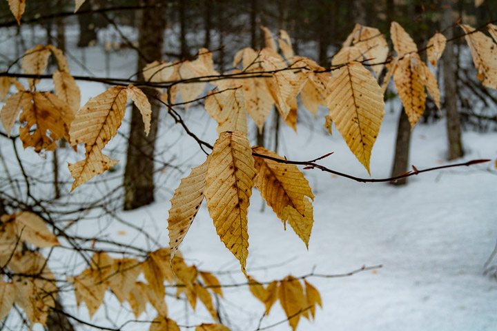 Our backwoods have a healthy distribution of beech trees (I used to think these were aspen trees) that keep their leaves as long as possible. On cloudy days they brighten our walks and talk to us on quiet days as the winds wrestle with their leaves.