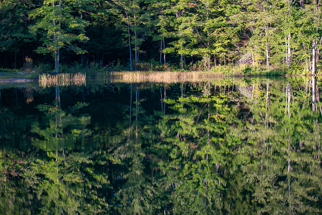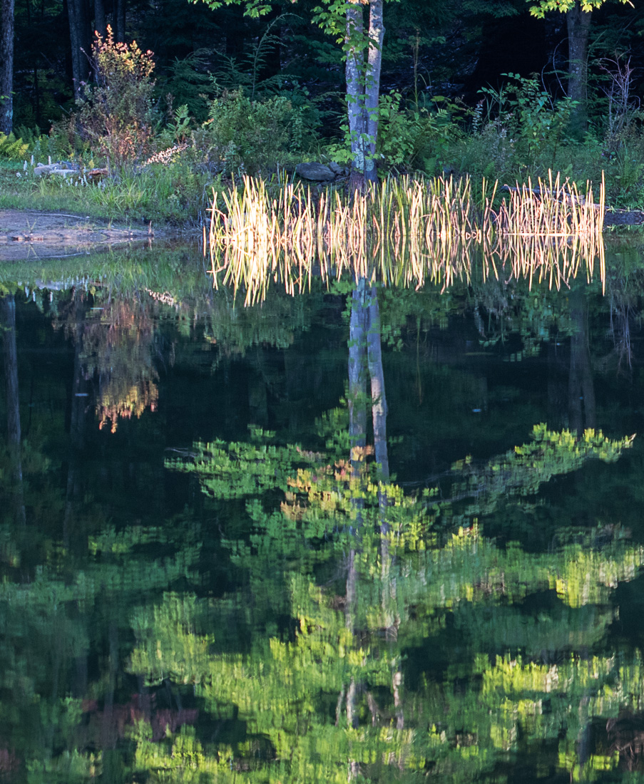 from the no-name pond on a late summer late afternoon; an impressionist painting using light and water