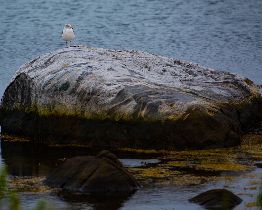 A herring gull contemplates a misty, cloudy afternoon along the Connecticut coast and Fishers Island Sound