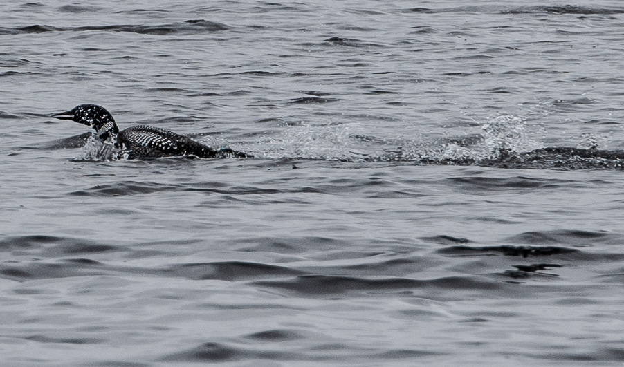 A couple days ago while walking along an inlet on Woodbury Pond, we spied a couple loons swimming and diving. All of a sudden, one burst into a sprint. The bird did this for more than a quarter mile.
