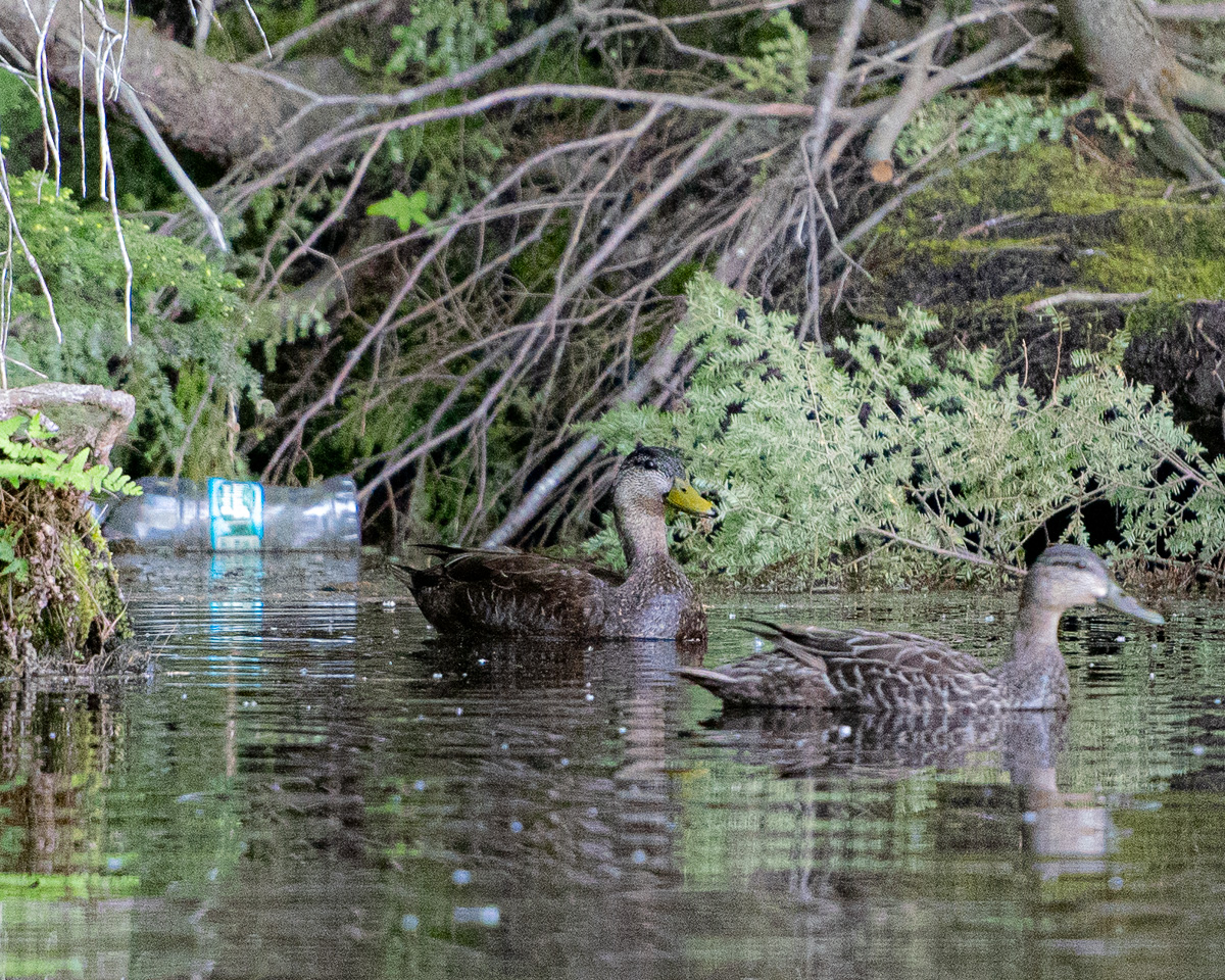 A pair of black ducks meander along a pond inlet just a few days ago.