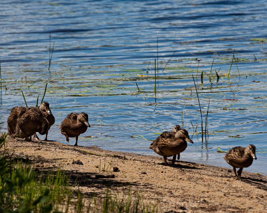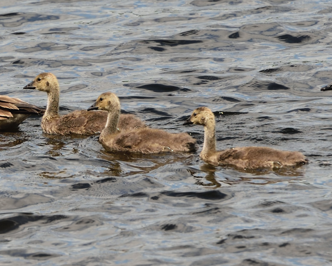 A Canada geese group of juveniles ply the near coast on Lake Contoocook in New Hampshire the other day.