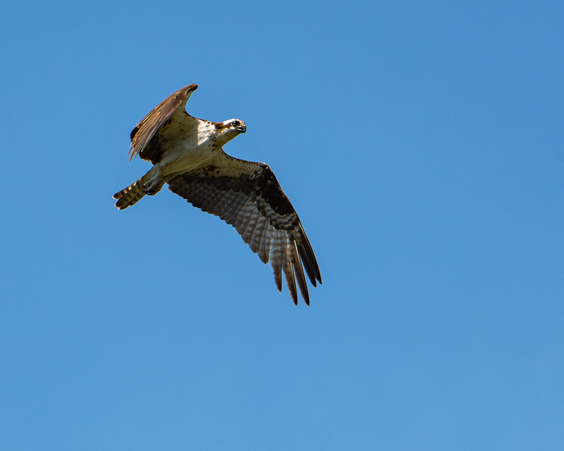 The osprey shown in the previous post spent the entire fifteen minutes we were near their nest flying overhead, staring at us and voicing displeasure.