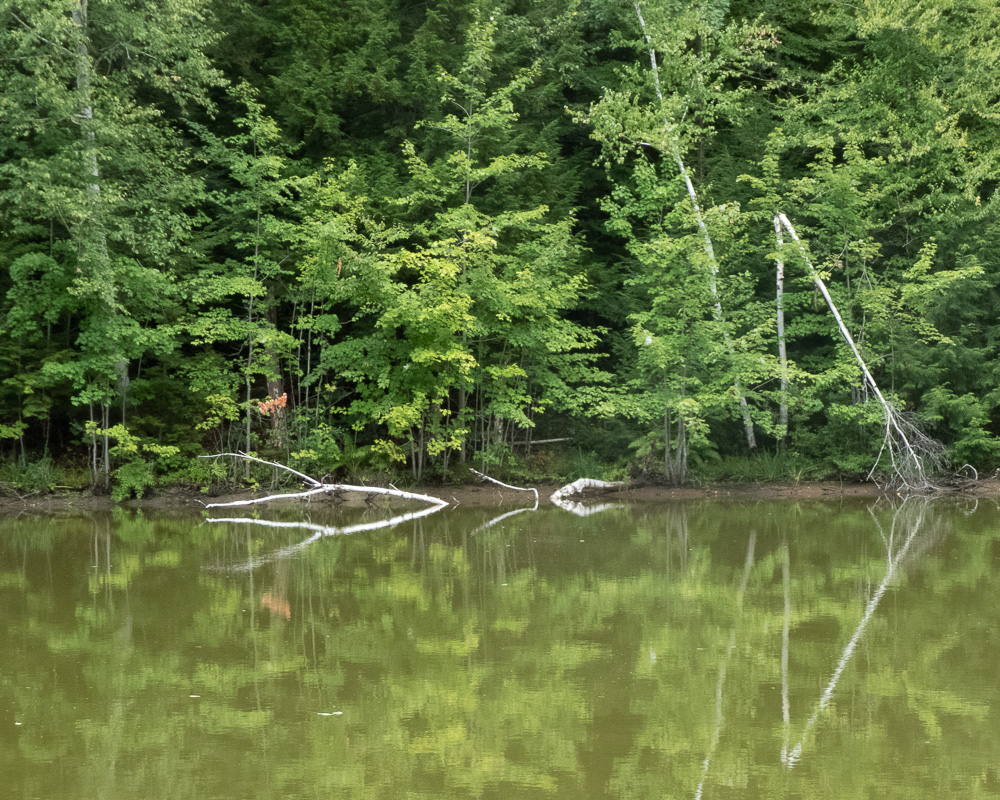 Along the edge of Woodbury Pond, a black duck enjoys a quiet morning.