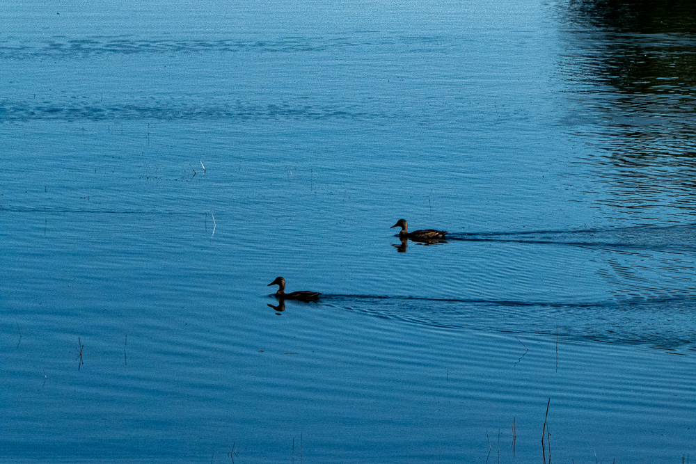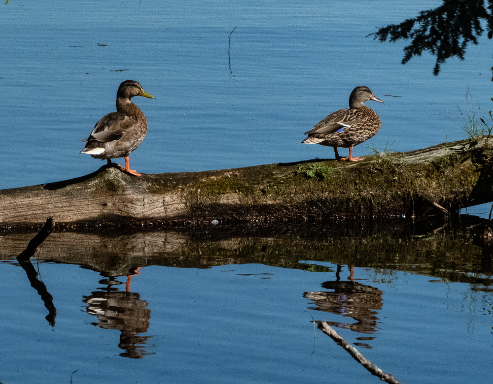 This pair of black ducks rested on a log while we slowly approached. Others were swimming around sampling vegetation from the shallow part of the lake.