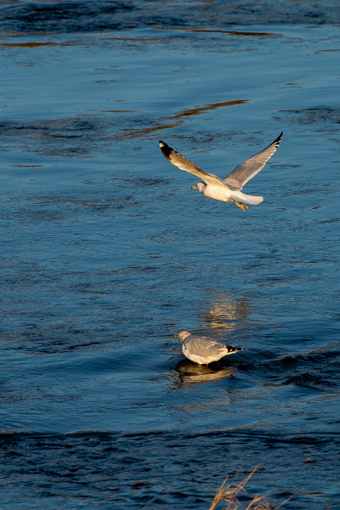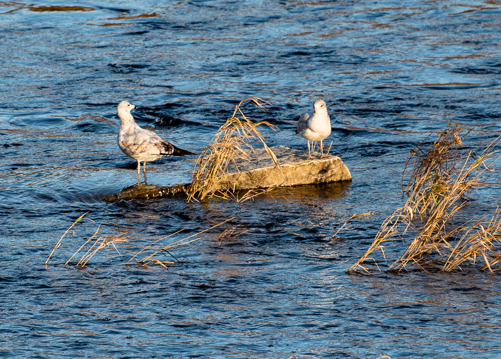 Another view of the typical afternoon in late summer along the Kennebec river in Augusta, Maine. The gulls hang around this inland waterway as if they were hanging around the ocean, which is twenty-to-thirty miles away. To make them feel at home, the river actually raises and falls from the tidal affects from the Gulf of Maine (the effect isn’t great and is negligible from this point north).