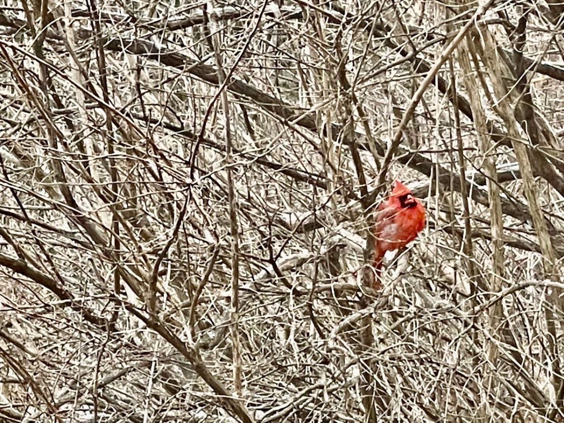 birdsMainephotography Cardinal in the trees A cardinal sits in a tree near the bird feeder near the coast of Maine