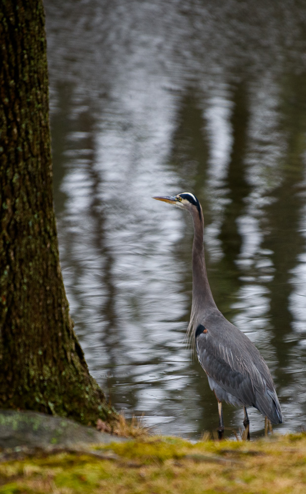 On a walk by the Ice Pond this weekend, we finally lucked out with one of the local herons.