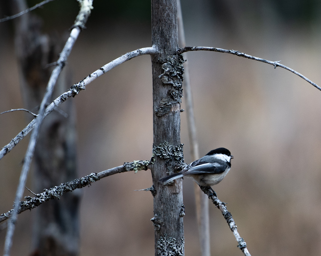 This is another chickadee at another bog. We watched a pair of them preparing a nest in a rotted tree stump similar to our previous post weeks ago. This time they were sensitive to my approach and I was unable to get any useful nesting shots.
