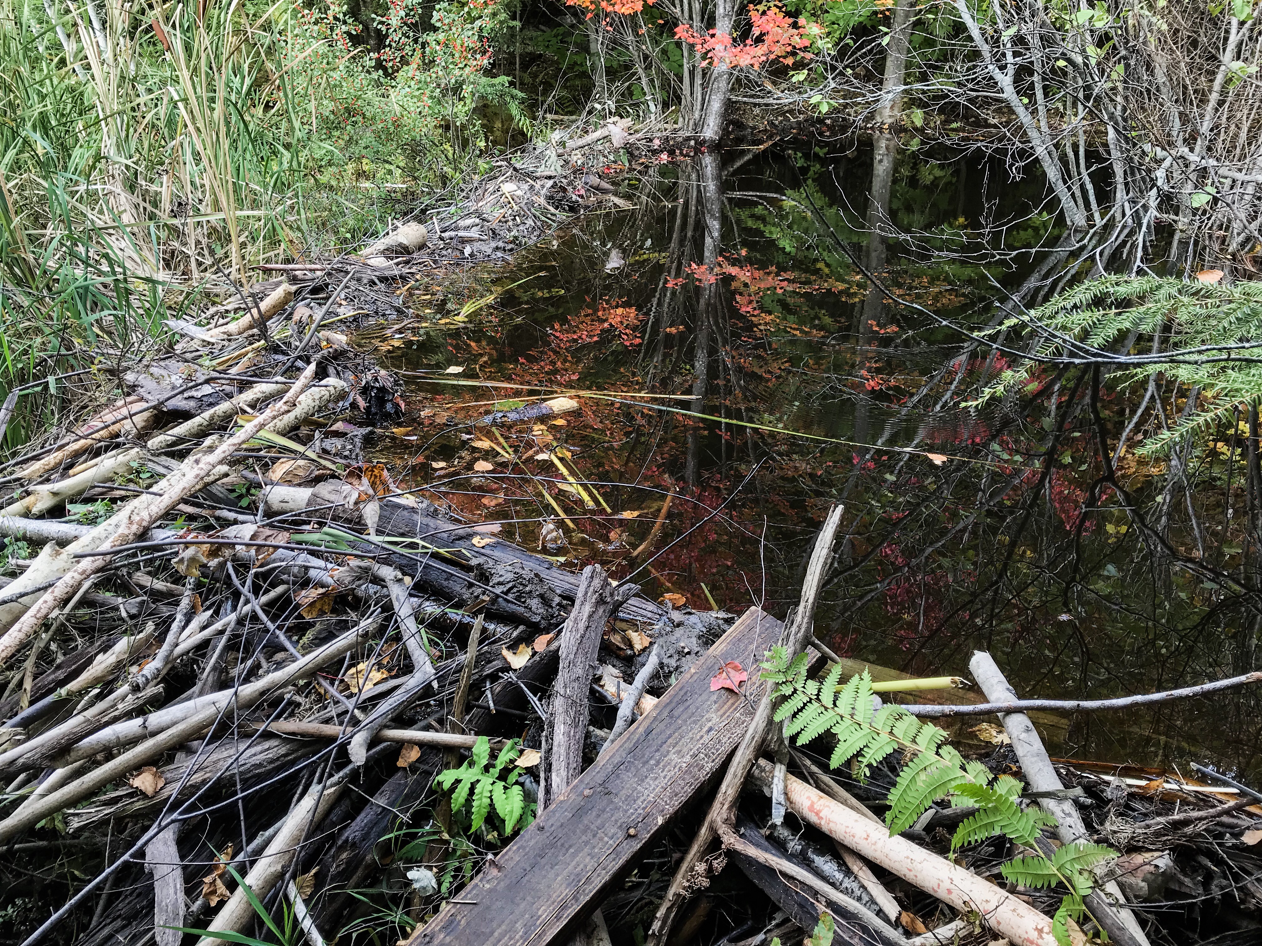 The latest project by our local beaver team includes dimension lumber as well as the usual complement of trunks, branches, leaves, and mud.