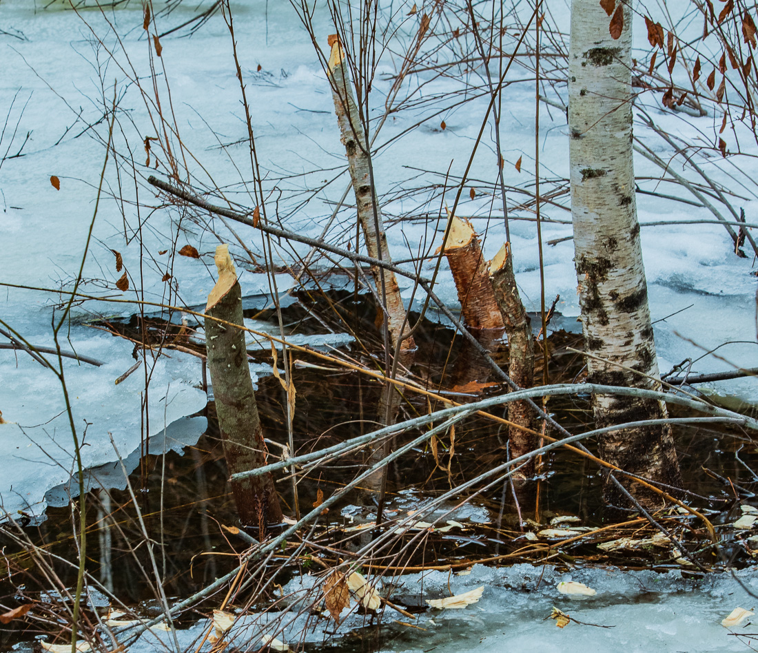 We have recently found several beaver dams in the backwoods. While we are hoping to get some pictures of the new inhabitants, we have gone back to the archives and found some interesting images from the past (here is an April 2017 snapshot from the far bog).