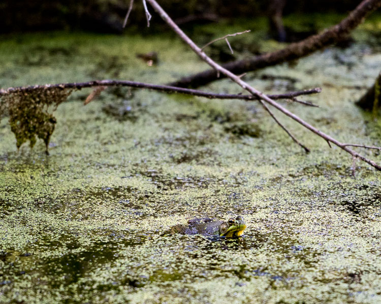 The far bog has been completely filled with what I call duck weed. The frogs seem to like it but I have seen fewer ducks this year at this spot.