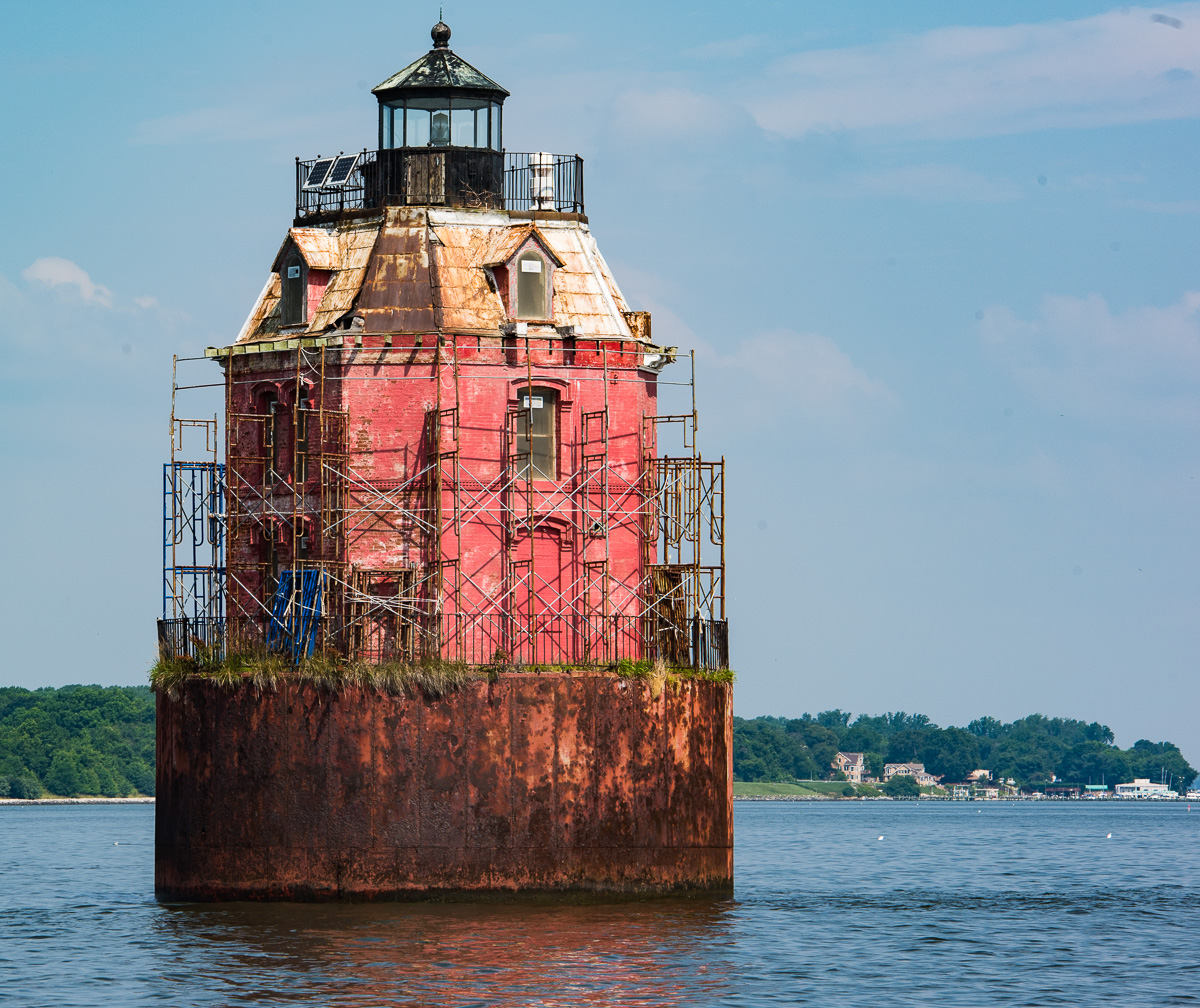 House. On the Chesapeake Bay marking the Patapsco River and the entrance to Baltimore harbor. It was curious to me that there were no birds hanging around the structure. At the top, by the right side railing, one can see inanimate figure of a bird on a post.